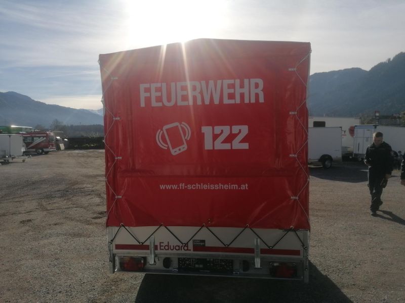 | Aufbau | mit Planenaufbau 180 cm inkl. selbstaufrollbarer Hintergiebel, selbstaufrollbare Seitenteile links und rechts, Satteldach & UV-Digitaldruck |