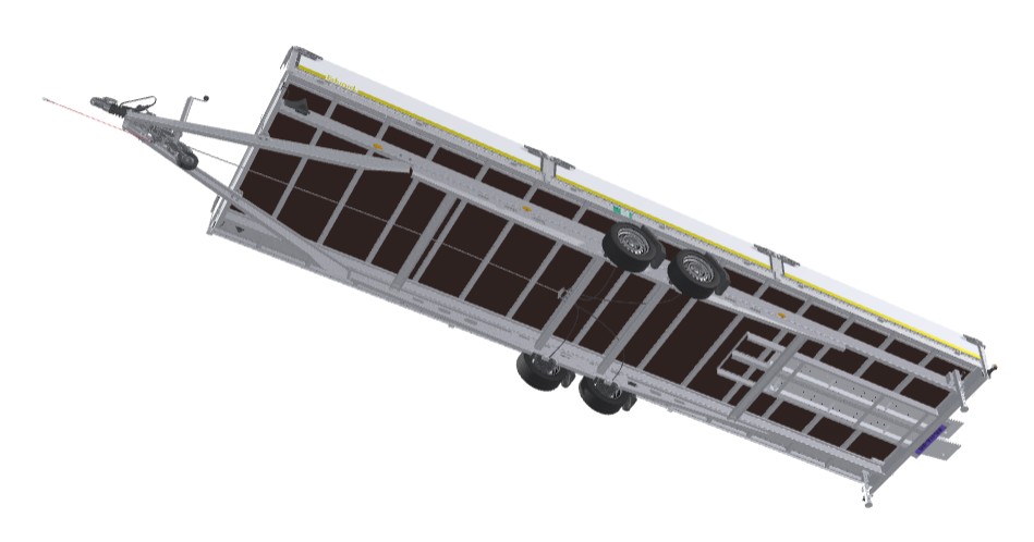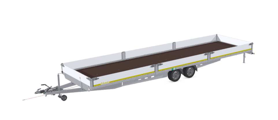 Dieser gebremste Zweiachser-Plateauwagen ist bekannt für seine Stabilität und beträchtliche Länge. Ein Plateauwagen mit zwei oder drei Achsen wie dieser bietet optimale Sicherheit und Zuverlässigkeit für jeden, der große und schwere Lasten transportieren muss. Und der größte Vorteil? Die hohe Ladekapazität.