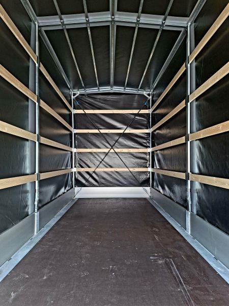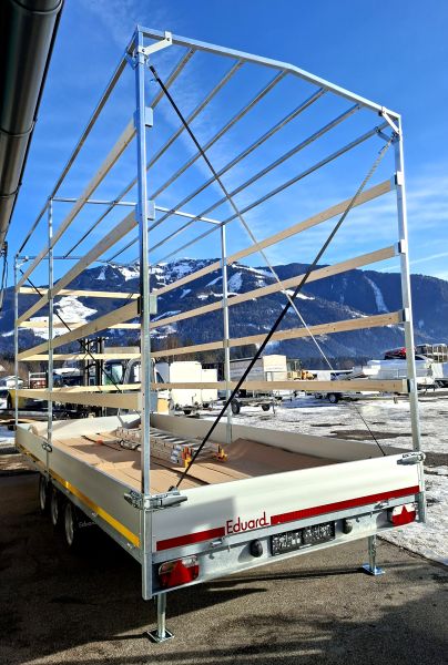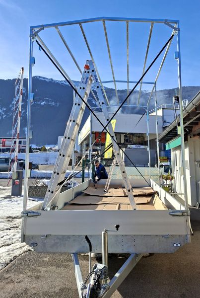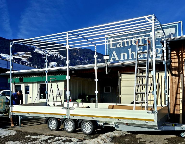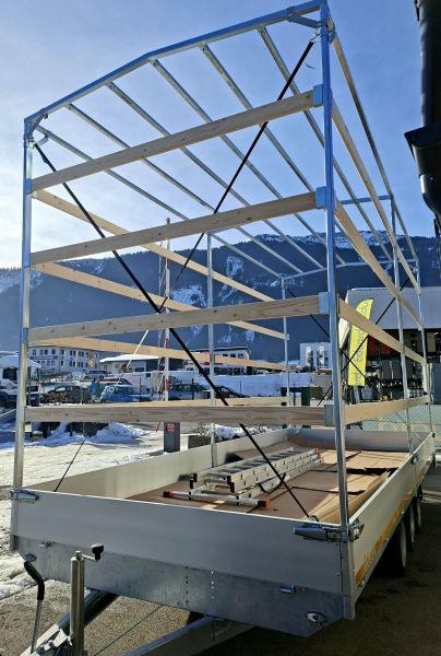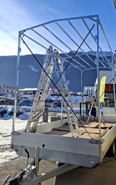 | Aufbau | mit Planenaufbau 310 cm inkl. Satteldach & selbstaufrollbarer Hintergiebel, inkl. extra Bodenunterstützung, klappbare Stützfüße & Radstoßdämpfer |