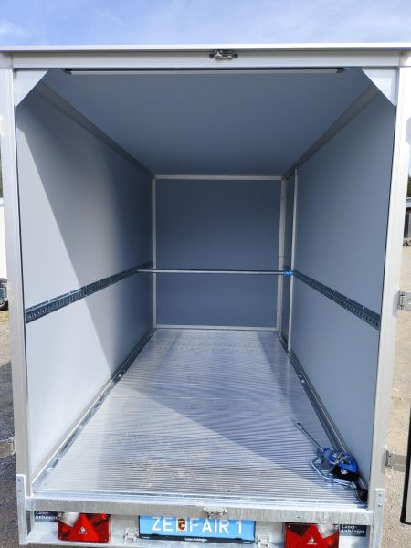 Der Sapphire-Kofferanhänger ist optimal für den Transport aller Arten von Waren und Materialien ausgestattet. HAPERT liefert diverse geschlossene Anhänger, die vollständig an die Bedürfnisse eines jeden Kunden angepasst werden können. Egal ob Sie einen Einachsanhänger, einen Tandem-Anhänger oder Hochlader mit Kofferaufbau suchen: Wir bieten immer eine passende Transportlösung zum besten Preis! Eine spezielle Version der Sapphire-PKW-Kofferanhänger für den Gebrauch als praktischer Marktwagen, multifunktioneller Verkaufswagen oder als professioneller Kühlanhänger ist ebenfalls möglich.